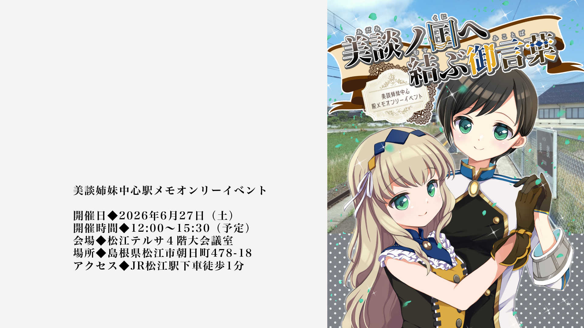 このイベントは、駅メモの美談姉妹中心の二次創作作品を対象とした同人誌即売会です。